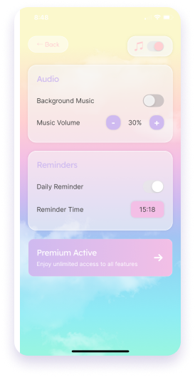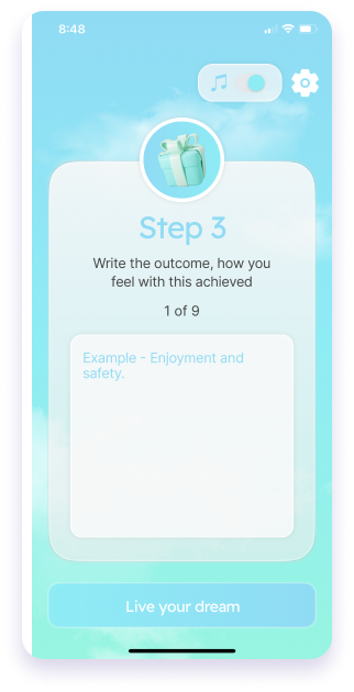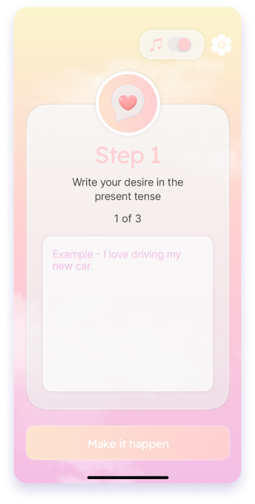 A beautiful interface and ambient music to put you in the mood for manifesting your dream life.