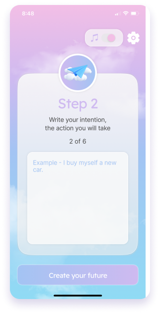 A beautiful interface and ambient music to put you in the mood for manifesting your dream life.